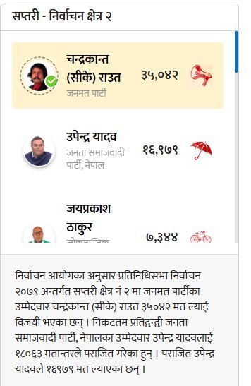 सप्तरी – २ मा डा. सी. के. राउतले गरेका विकास कार्यहरूको सार-संक्षेप हेर्नः यहाँ क्लीक गर्नुहोस्
