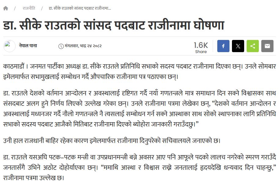 ३२-डा. सी. के. राउतले जेन-जी आन्दोलन हुँदा राजीनामा दिए, आन्दोलनकारीलाई सही बाटो देखाए र अधिकार रक्षा गर्न बोले