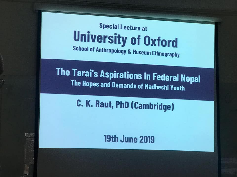 ५४-डा. सी. के. राउतले मधेशी इतिहास र पहिचानलाई अन्तराष्ट्रियकरण गरे; विभिन्न विश्वविद्यालय र थिंकटैंकमा मधेश सम्बन्धी प्रशिक्षण र लेक्चर दिए
